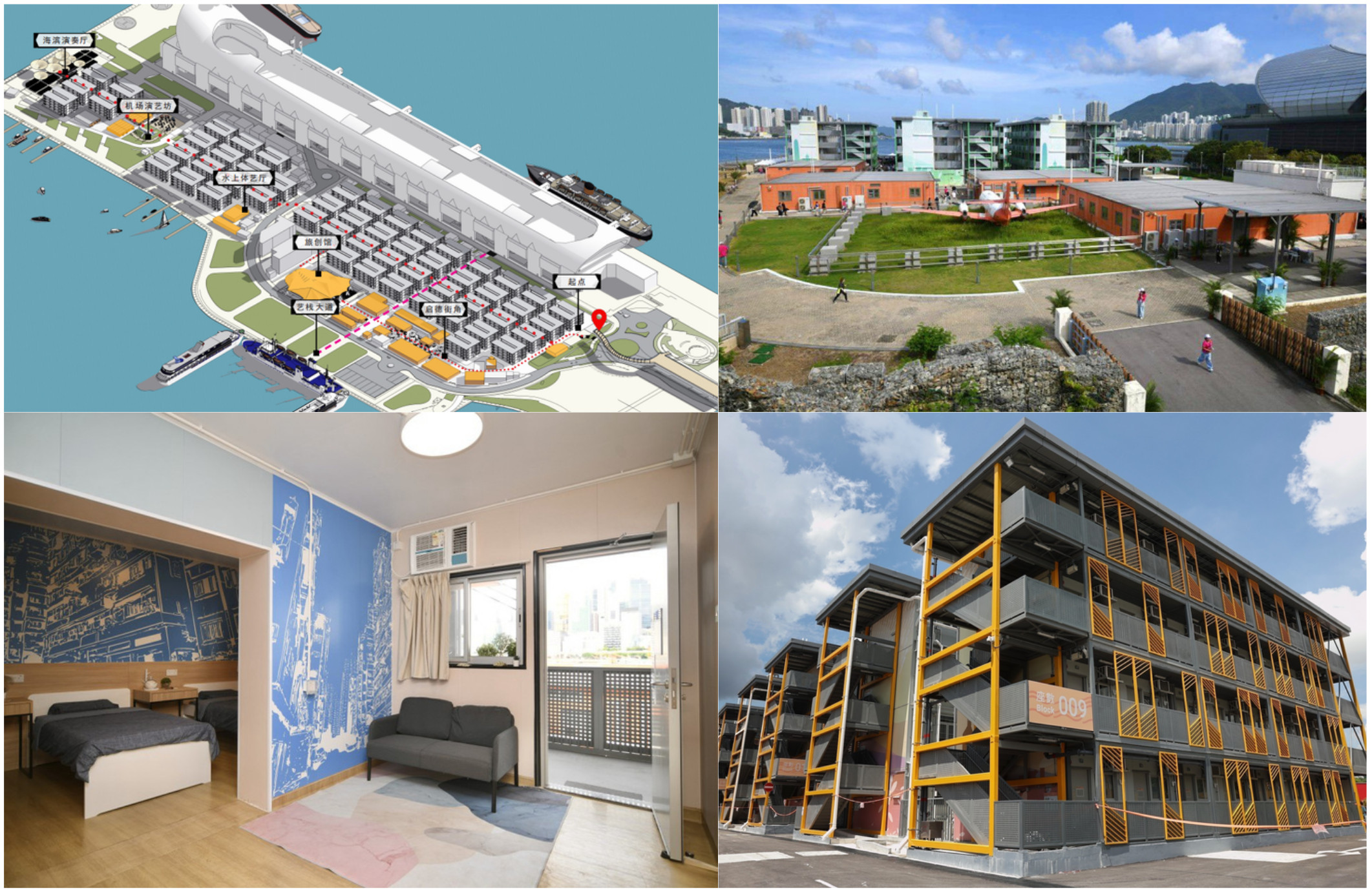 啟航1331項目的前身是2022年由中央援建香港的防疫隔離設施。2022年底,香港特區政府公開招標,計劃將其改造為“青年驛站”旅舍和青年文化藝術交流空間。中旅集團積極響應,以“將昔日輝煌的飛機跑道,打造成今日青年的夢想跑道”為理念參與投標,并于今年4月成功中標。5月底至7月初,項目完成場地交接驗收,隨后同步推進規劃、設計、施工及招商等工作,計劃于10月下旬在園區部分區域率先開業,年底前完成整個園區的改造并投入運營。